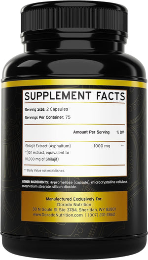 SHILAJIT 10000 MG 150 CÁPSULAS NO GMO DORADO NUTRITION