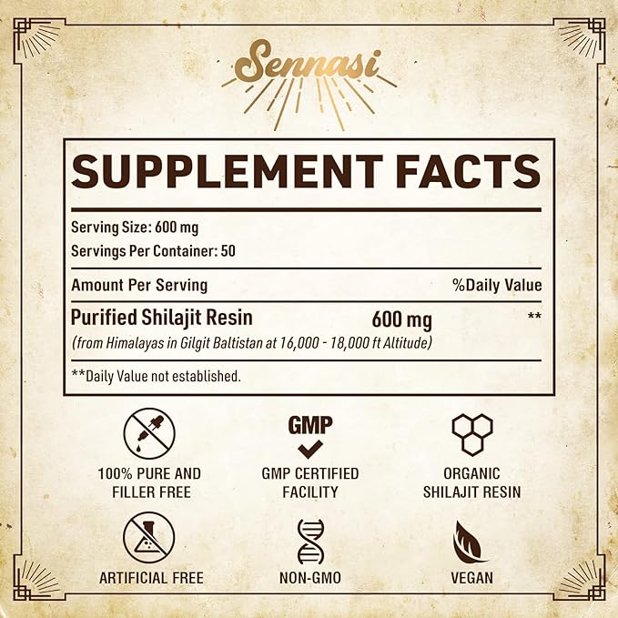 - Máximo 600 mg de resina shilajit en cada porción, con un verdadero estándar de oro de pureza y potencia, obtendrás auténtica resina shilajit orgánica de mejor calidad. Di no a esos shilajit de bajo grado, baja potencia y lote pequeño en menos gramos. La resina Shilajit de Sennasi viene en una botella de 1.06 oz con una botella de vidrio doble sellada y protegida contra la luz para mantener la resina shilajit fresca y segura. ¡Compra por la calidad y potencia!