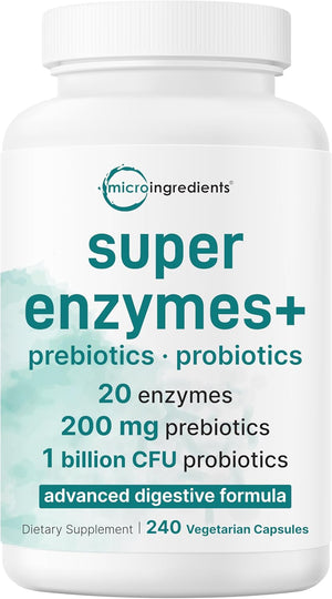 SUPER ENZIMAS 20 TIPOS CON PROBIOTICOS Y PREBIOTICOS MICROINGREDIENTS 240 CAPSULAS VEGETALES NO GMO