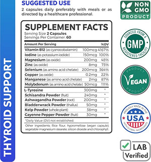SOPORTE PARA TIROIDES 868 MG CON TIROSINA 300 GMG Y SCHISANDRA 240 MG 120 CAPSULAS VEGANO HEALTHS HARMONY