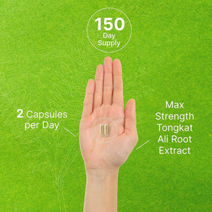 300 cápsulas de alta concentración por botella, 2 cápsulas de tamaño de porción, entrega 400 mg de raíz de tongkat ali (longjack) de un extracto de 300:1 con 400 mg de raíz de maca por dosis, dura hasta un suministro de 150 días.