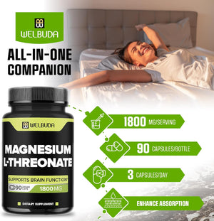 TREONATO DE MAGNESIO 1800 MG 90 CAPSULAS SIN GMO VEGANO WELBUDA
