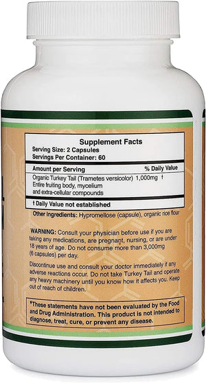 HONGO COLA DE PAVO DOUBLE WOOD 1000 MG 120 CAPSULAS VEGETALES TURKEY TAIL MUSHROOM