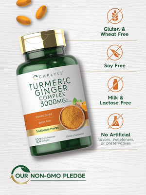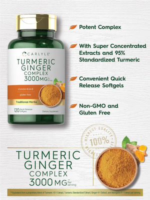 CURCUMA CON JENGIBRE COMPLEX CARLYLE 3,000 MG 120 CAPSULAS BLANDAS SIN GMO