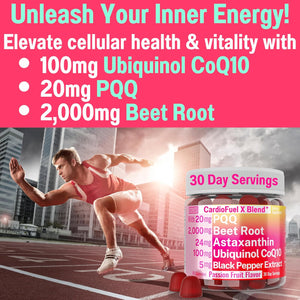 Aumento de la energía celular: Las gomitas de remolacha están formuladas para mejorar la producción de ATP (adenosín trifosfato) en las mitocondrias, lo que puede resultar en un aumento significativo de los niveles de energía. La combinación de remolacha, Ubiquinol y CoQ10 apoya la función mitocondrial, ayudando a combatir la fatiga y a mejorar el rendimiento físico.