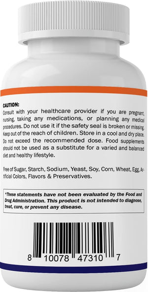 - Libre de almidón, sodio, soja, levadura, maíz, trigo, huevo, color artificial, sabor y conservantes.