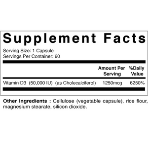 VITAMINA D3 COLECALCIFEROL 50,000 IU 60 CAPSULAS VITAMATIC