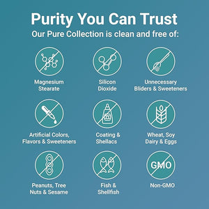 Suplementos premium del complejo B sin OGM. Fabricado sin rellenos, soja, lácteos, gluten, pescado, mariscos, cacahuetes y nueces de árbol. Los ingredientes deben pasar nuestras pruebas de laboratorio de terceros para garantizar un producto seguro, puro y potente.