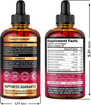 Favorece a la energía, cerebro y corazón: los suplementos de complejo B de vitamina para hombres y mujeres están elaborados para respaldar las funciones cerebrales y nerviosas, ayudándote a mantenerte alerta, enfocado y con un excelente estado mental. ¡Deja que tu inteligencia brille con un respaldo sostenido del cerebro y los nervios! La sólida mezcla de complejo de vitamina B líquida con ácido pantoténico B5 y vitamina B12 asegura que tu sistema inmunológico pueda enfrentar los desafíos de la vida.
