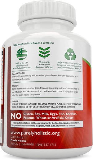 VITAMINA B COMPLEX SUPER COMPLEJO B 180 CAPSULAS PURELY HOLISTIC