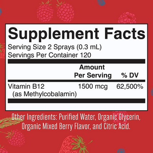 Múltiples beneficios: mantén los niveles de energía de tu cuerpo y beneficia tu cerebro apoyando la neurofunción con este sabroso spray de bayas. B12 puede ayudar al cuerpo con función nerviosa normal y glóbulos rojos, pero también puede notar un aumento de energía si tiene deficiencia. Además, si tienes una variante de gen MTHFR (y alrededor del 40% de nosotros podría), puedes encontrar que este es tu tipo preferido de B12
