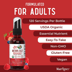 Aerosol líquido orgánico USDA B12: MaryRuth's ha salido con un B12 orgánico USDA que está metilado y en una forma que se ha demostrado que tiene una biodisponibilidad superior. Muchos suplementos B12 a menudo se llenan de sabores artificiales o utilizan una forma de B12 que contiene cianuro, que es del tipo que algunas personas quieren mantenerse alejadas.