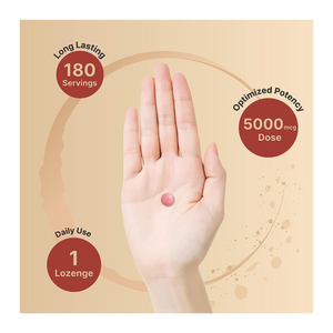 Potencia óptima de dosis de 5.000 mcg. Una porción al día. Suministro total de 6 meses. Forma activa de metilo B12 de alta calidad.