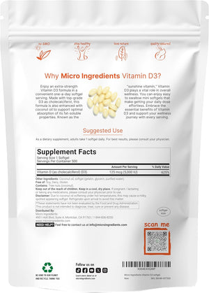 VITAMINA D3 5000 IU MICROINGREDIENTS 500 CAPSULAS CON ACEITE DE COCO NO GMO