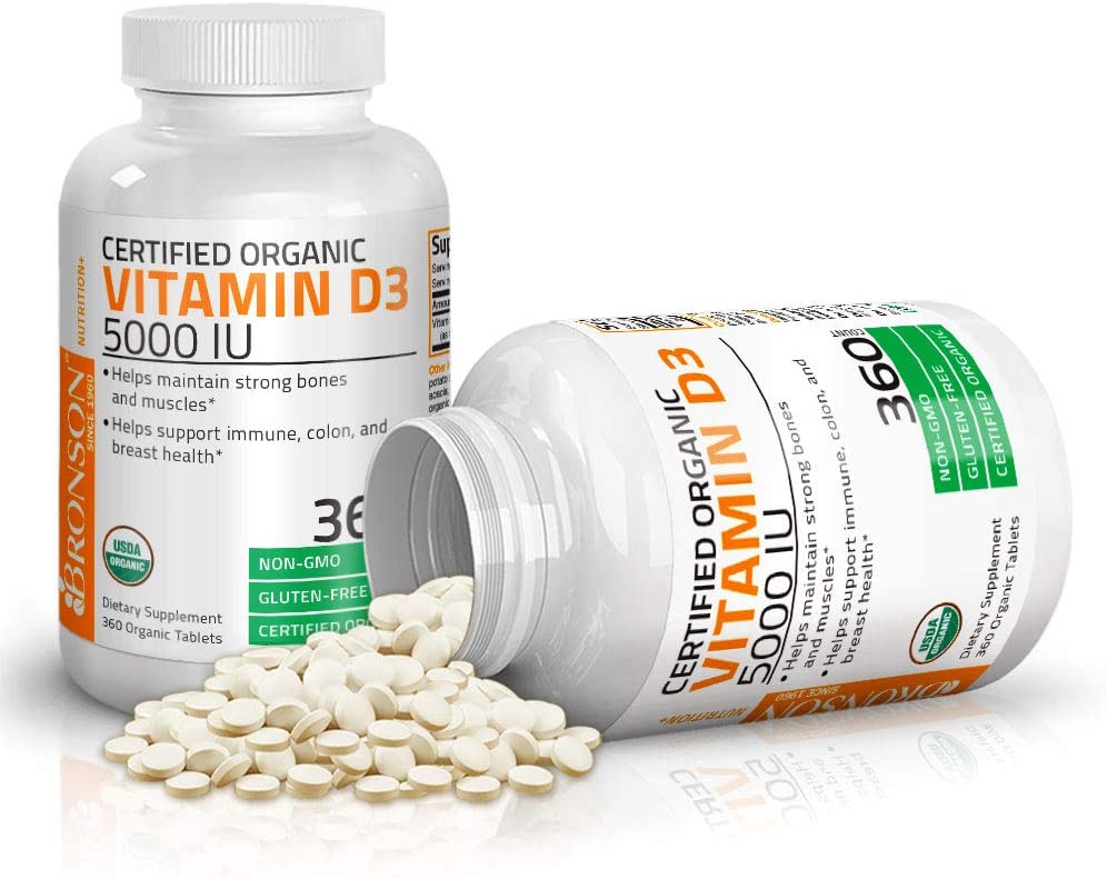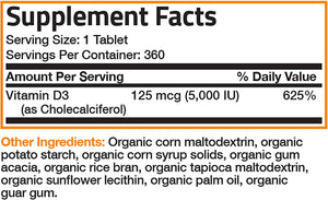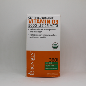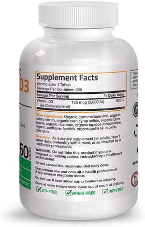 VITAMINA D3 5,000 IU 360 TABLETAS SIN GMO BRONSON