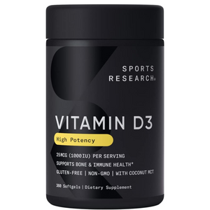 VITAMINA D3 COLECALCIFEROL 1000IU 360 CAPSULAS BLANDAS SIN GMO SPORTS RESEARCH