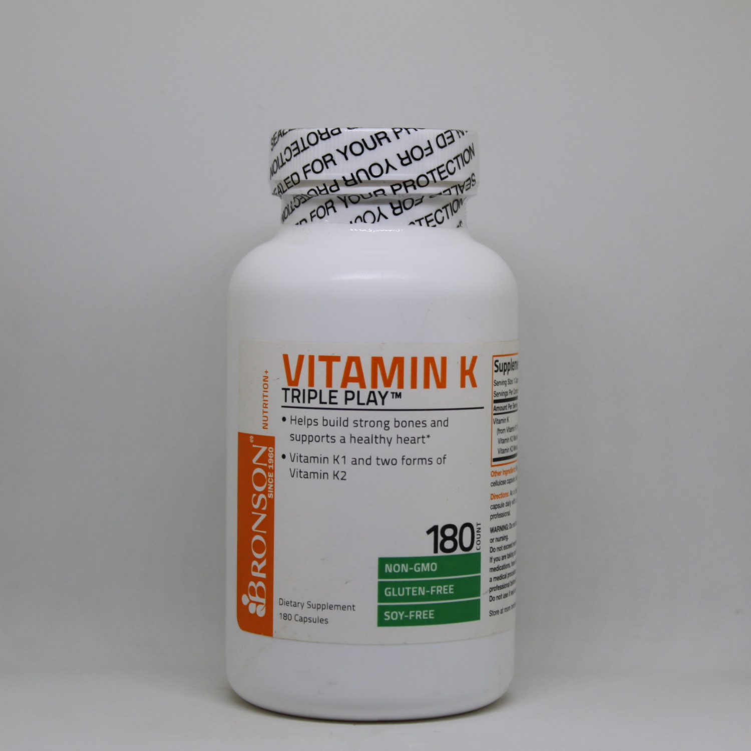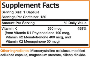VITAMINA K 1,100 MCG 180 CAPSULAS SIN GMO BRONSON