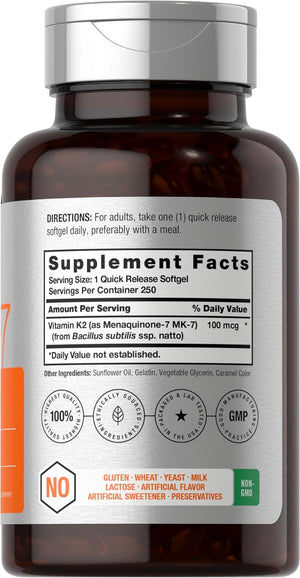 VITAMINA K2 MK7 100 MCG 250 CAPSULAS BLANDAS SIN GMO HORBAACH