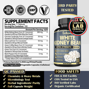 WHITE KIDNEY BEAN BLOQUEADOR DE CARBOHIDRATOS 6000 MG + GARCINIA CAMBOGIA 1000 MG + TE VERDE 1000 MG 180 CAPSULAS SIN GMO VEGANO SATOOMI