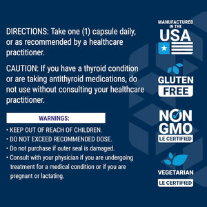 Salud de la tiroides y más allá: el yodo es un oligoelemento que promueve la salud que es esencial para la buena salud, y generalmente se encuentra dentro de mariscos y sal yodada. Nuestra fórmula de yodo marino proporciona 1000 mcg para apoyar niveles saludables de este elemento esencial Elemento esencial de trazo: la glándula tiroides absorbe el yoduro de la sangre para hacer y liberar las hormonas en la sangre. Una glándula tiroides saludable no solo actúa como termostato de tu cuerpo, sino que también es uno de los mantenedores significativos del metabolismo Beneficios saludables sin la sal: el yodo de mar proporciona 1000 mcg de este elemento esencial sin aumentar tu ingesta de sal mediante el uso de una mezcla de algas marinas orgánicas para proporcionarte más del 667% del valor diario recomendado del yodo Los ingredientes importan: se obtienen solo los mejores ingredientes crudos con la pureza y potencia que tu cuerpo merece. La mayoría de nuestros productos no son OMG, sin gluten y fabricados en los Estados Unidos, y hay un certificado de análisis disponible Vive tu vida más saludable: durante más de 40 años, hemos estado desarrollando fórmulas avanzadas y eficaces hechas con los más altos estándares. Nuestras formulaciones se crean utilizando los ingredientes y dosis utilizadas en los estudios que los inspiraron