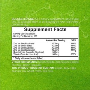 ZINC QUERCETINA CON VITAMINA C COMPLEJO DEAL 1,050 MG 240 CAPSULAS SIN GMO